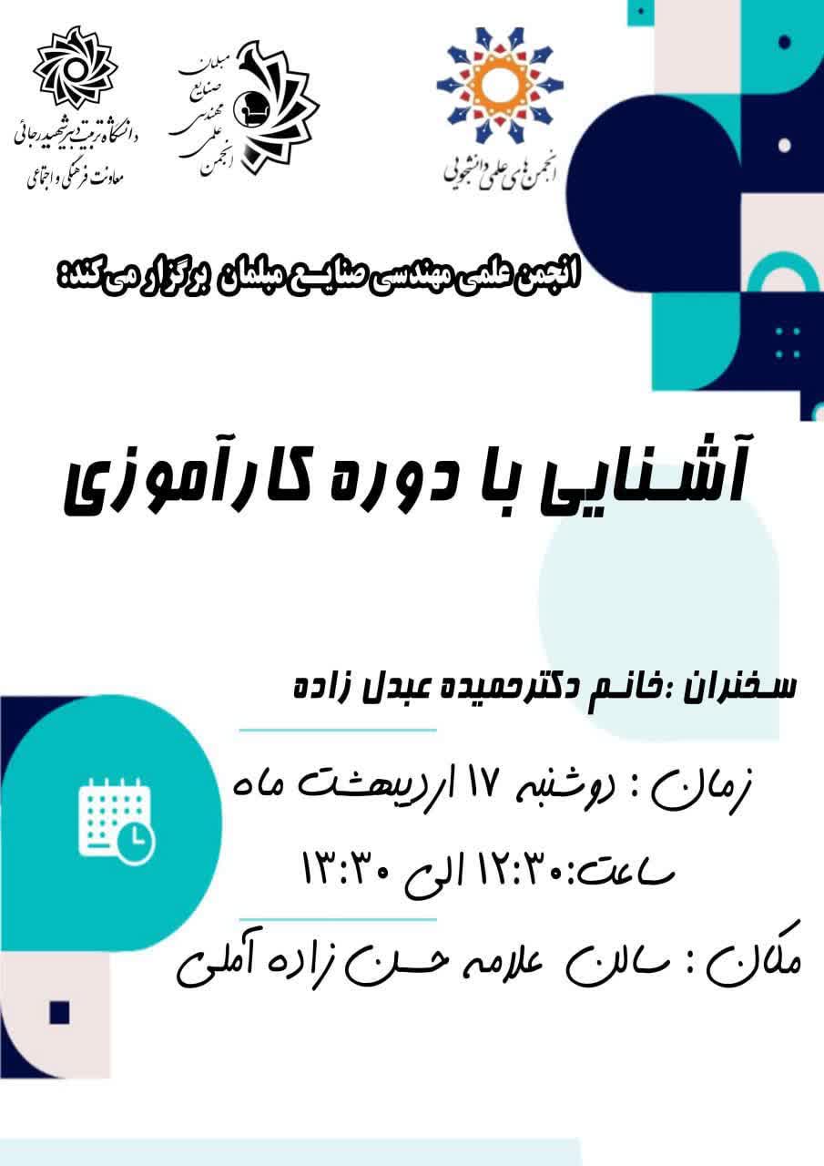 به همت انجمن علمی دانشجویی مهندسی صنایع مبلمان و با همکاری انجمن علمی مواد و متالورژی دانشگاه تربيت دبیر شهید رجایی برگزار می گردد :