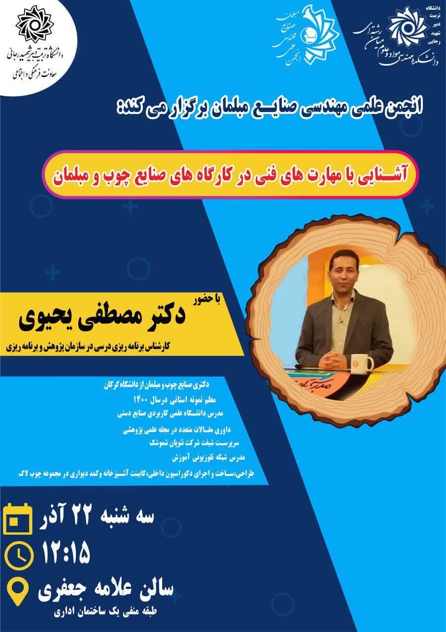 💠انجمن علمی مهندسی صنایع مبلمان برگزار می‌کند :