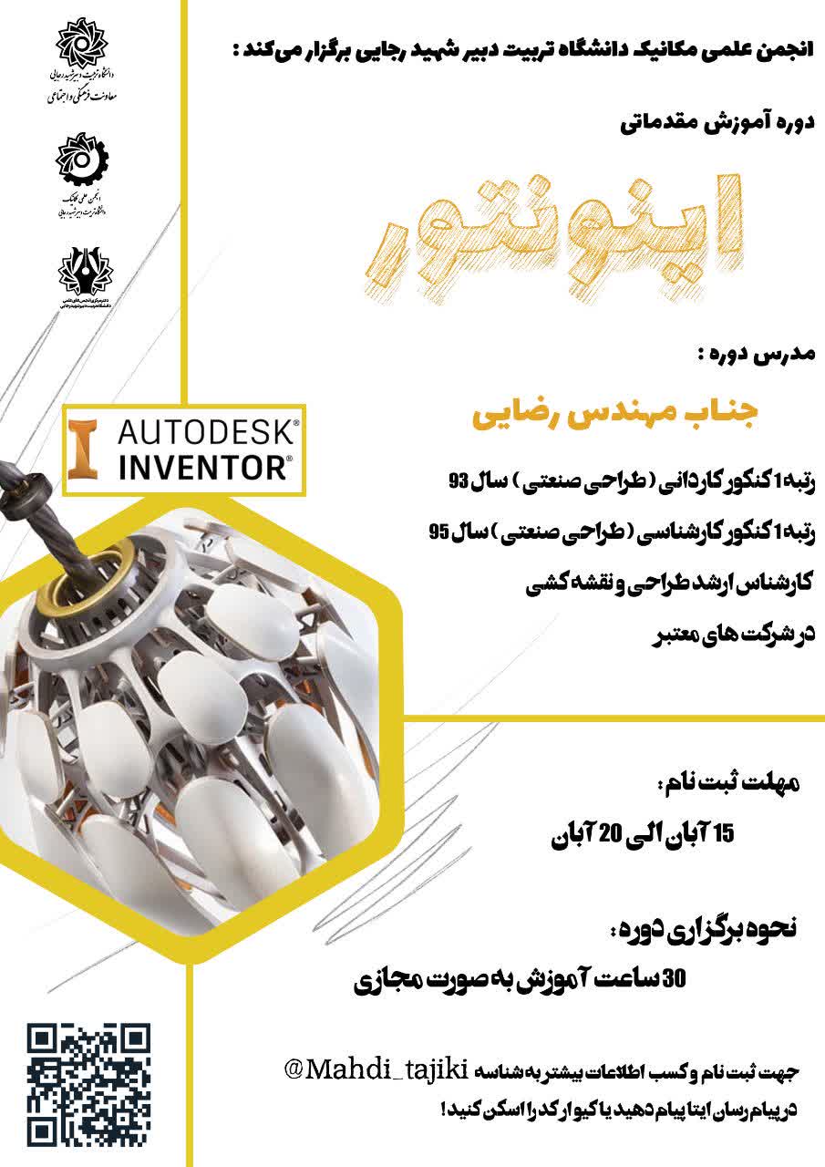 اجرای دوره آموزشی مقدماتی مجازی نرم افزار اینونتور ۱۹ آبان ۱۴۰۳/در اخبار معاونت فرهنگی و اجتماعی /توسط cultureمعاونت فرهنگی و اجتماعی خبر داد: به همت انجمن علمی دانشجویی مکانیک دانشگاه تربیت دبیر شهید رجایی برگزار می گردد: اجرای دوره آموزشی مقدماتی مجازی نرم افزار اینونتور مدرس : آقای مهندس رضایی استاد سابق دانشکده مکانیک مهلت ثبتنام: ۱۵ الی ۲۰ آبانماه ۱۴۰۳ مدت دوره آموزشی: ۳۰ ساعت https://www.sru.ac.ir/wp-content/uploads/2024/11/photo14753954928.jpg 1280 905 culture https://www.sru.ac.ir/wp-content/uploads/2020/06/arm-uni-97-white-300x300.png culture2024-11-09 19:09:382024-11-10 11:17:10 اجرای دوره آموزشی مقدماتی مجازی نرم افزار اینونتور