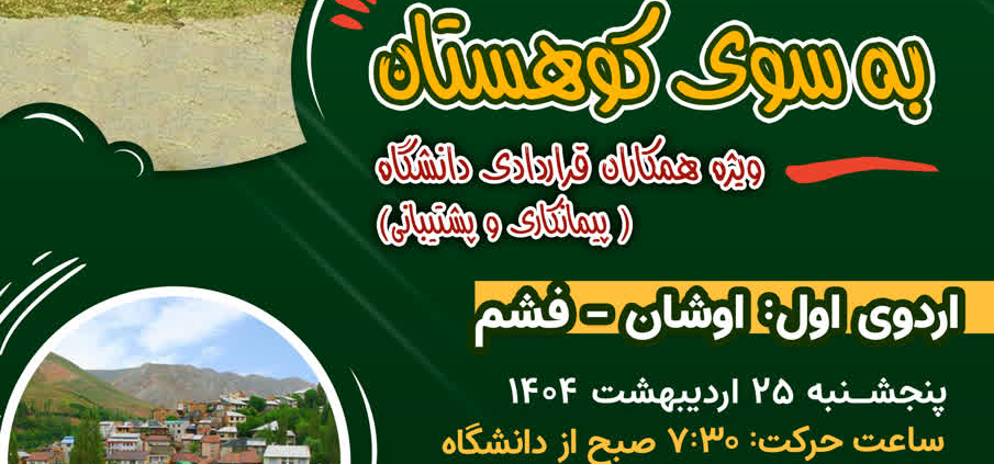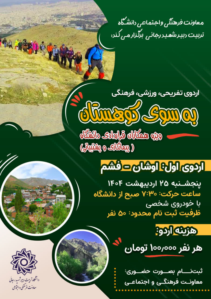 اردوی تفریحی، ورزشی، فرهنگی به سوی کوهستان (ویژه پرسنل محترم قراردادی “پیمانکاری و پشتیبانی”)