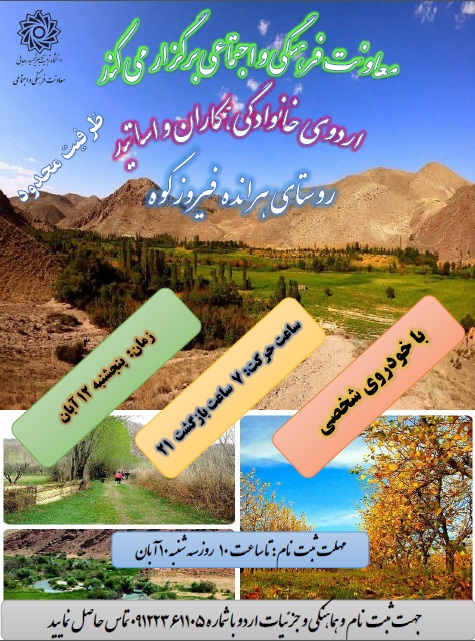 جهت ثبت نام وهماهنگی وجزئیات اردو با شماره ۰۹۱۲۲۳۶۱۱۰۵ تماس حاصل نمایید.