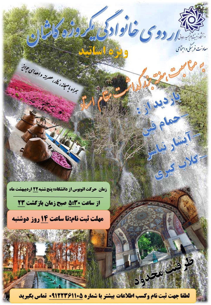جهت ثبت نام وآگاهی از جزئیات اردو با شماره ۰۹۱۲۲۳۶۱۱۰۵ تماس بگیرید