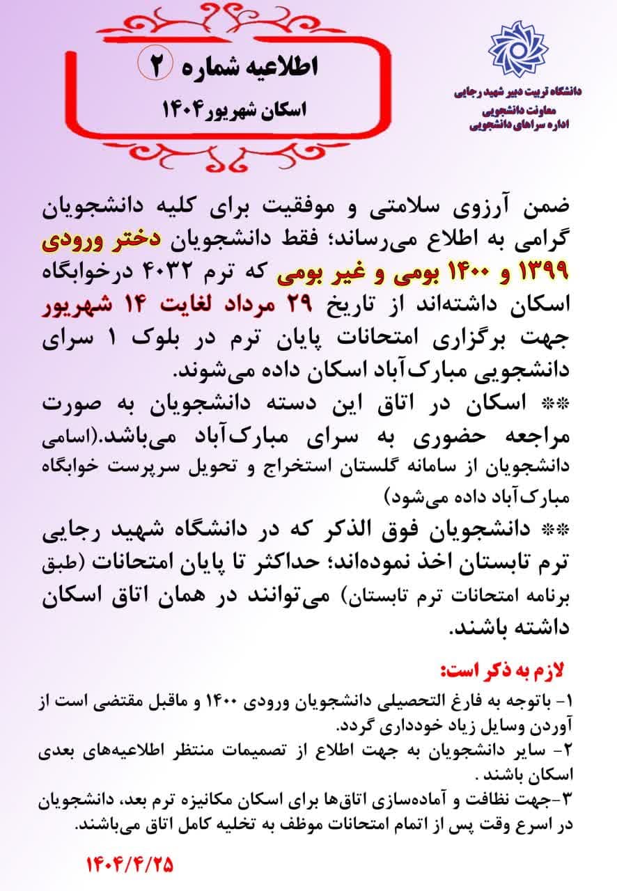 اطلاعیه شماره ۲، اسکان شهریور ۱۴۰۴ ۲۵ تیر ۱۴۰۴/در اخبار معاونت دانشجویی /توسط student https://www.sru.ac.ir/wp-content/uploads/2023/01/11اطلاهيه-اداره-خوابگاه-ها.jpg 250 354 student https://www.sru.ac.ir/wp-content/uploads/2020/06/arm-uni-97-white-300x300.png student2025-07-16 08:56:062025-07-16 08:56:06اطلاعیه شماره ۲، اسکان شهریور ۱۴۰۴
