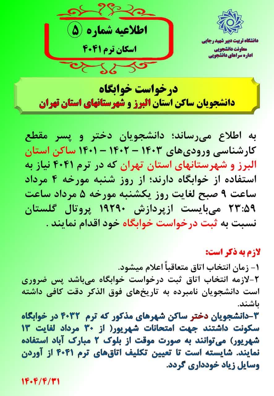 اطلاعیه شماره ۵، اسکان ترم ۴۰۴۱ ۳۱ تیر ۱۴۰۴/در اخبار معاونت دانشجویی /توسط student https://www.sru.ac.ir/wp-content/uploads/2023/01/11اطلاهيه-اداره-خوابگاه-ها.jpg 250 354 student https://www.sru.ac.ir/wp-content/uploads/2020/06/arm-uni-97-white-300x300.png student2025-07-22 11:45:372025-07-22 11:45:37اطلاعیه شماره ۵، اسکان ترم ۴۰۴۱