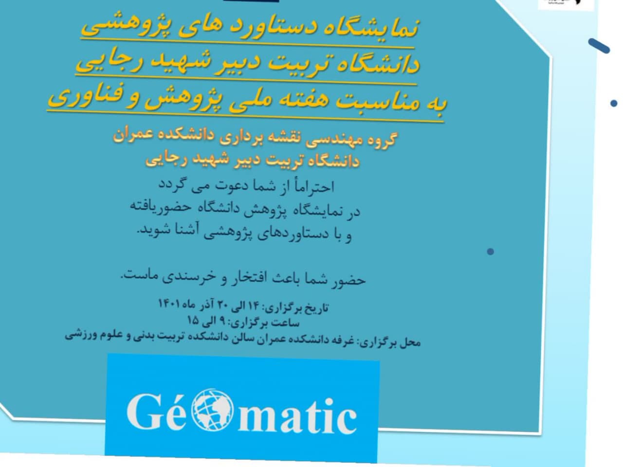 معاونت فرهنگی و اجتماعی خبر داد : به همت انجمن علمی دانشجویی نقشه برداری دانشکده مهندسی عمران ، در همکاری با معاونت پژوهش و فناوری دانشگاه تربیت دبیر شهید رجایی برگزار گردید: