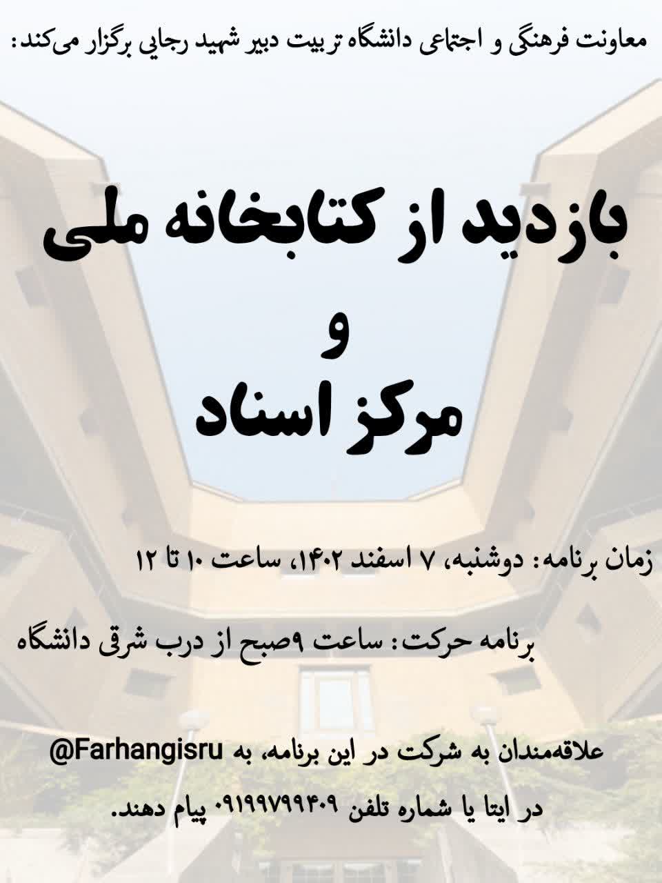 معاونت فرهنگی و اجتماعی دانشگاه تربیت دبیر شهید رجایی برگزار می‌کند:
