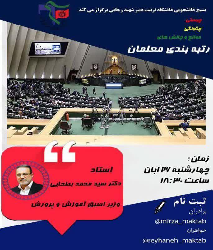 بررسی “طرح رتبه بندی معلمان”با حضور دکتر سید محمد بطحایی وزیر اسبق آموزش و پرورش