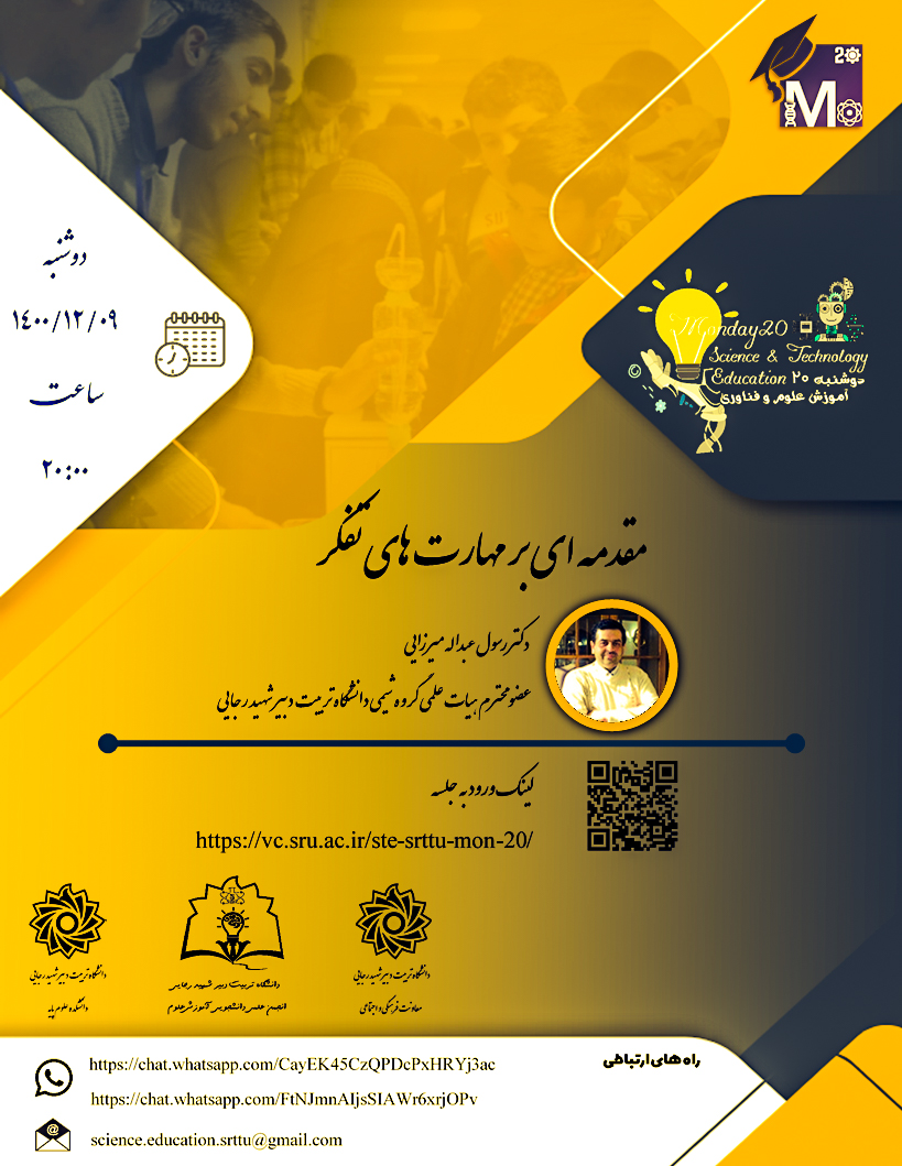 برنامه دوشنبه ۲۰ – آموزش علوم و فناوری با عنوان “مقدمه ای بر مهارت های تفکر”