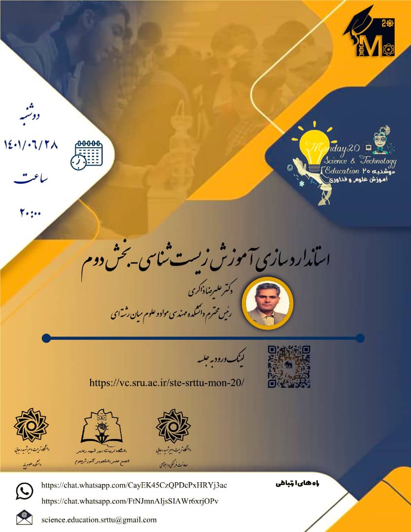 برنامه دوشنبه ۲۰ – آموزش علوم و فناوری با عنوان “استاندارد سازی اموزش زیست شناسی- بخش دوم”