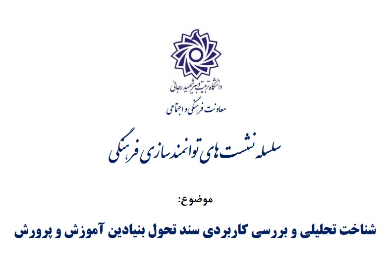 برگزاری دومـین جـلسه طـراحی و هـماهنگی برنامـه های توانـمندسازی فرهـنگی در زمـینه سند تـحول بـنیادین آموزش و پرورش