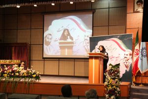 این مراسم با سخنرانی دختر مکرمه شهید رجایی ادامه یافت. ایشان ضمن تشکر از مسئولین دانشگاه به جهت برگزاری این مراسم به بیان خاطراتی از پدر خویش پرداختند و در انتها نیز از ایشان توسط ریاست، مسئول نهاد مقام معظم رهبری و مسئولین بنیاد شهید منطقه ۱۲ تهران تقدیر به عمل آمد.