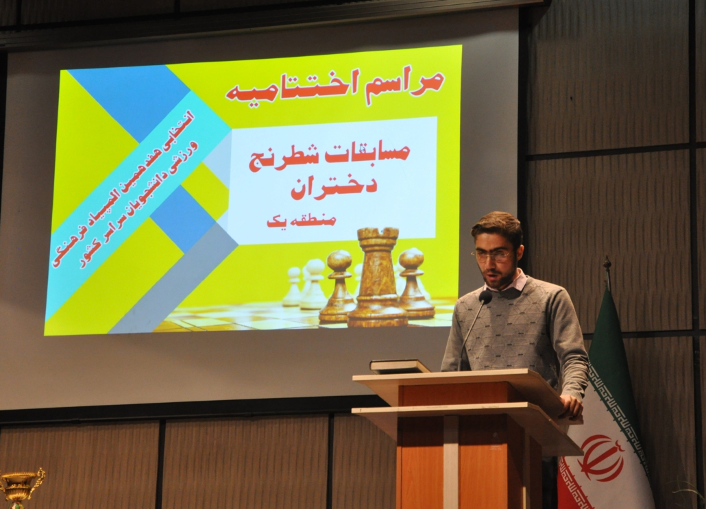 پس از ایراد سخنرانی مسئولین محترم دانشگاه،جناب آقای ابراهیم زاده رئيس انجمن شطرنج وزارت علوم ضمن تقدیر از میزبانی خوب و شایسته دانشگاه شهید رجائی از آقای پورشاه ماری سرداور محترم مسابقات خواستند تا گزارش برگزاری مسابقات را ارائه و نفرات برتر مواد انفرادی و تیمی را معرفی نمایند.