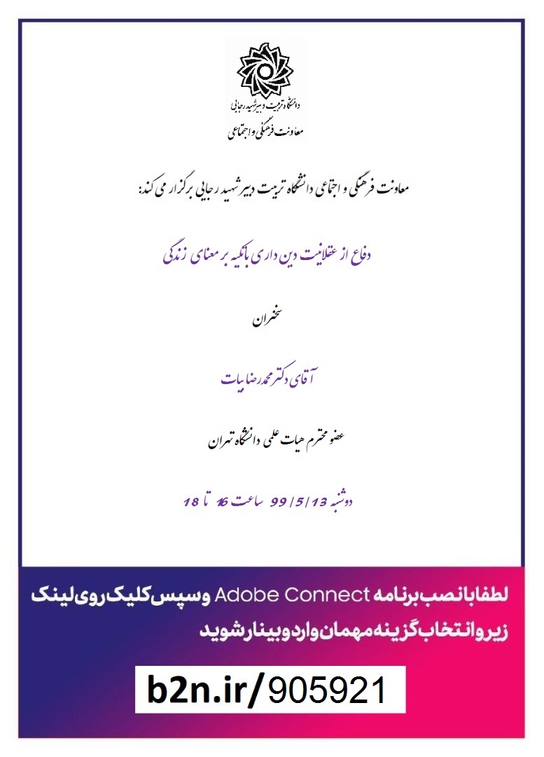 برگزاری وبینار با عنوان “دفاع ازعقلانیت دین داری با تکیه برمعنای زندگی”