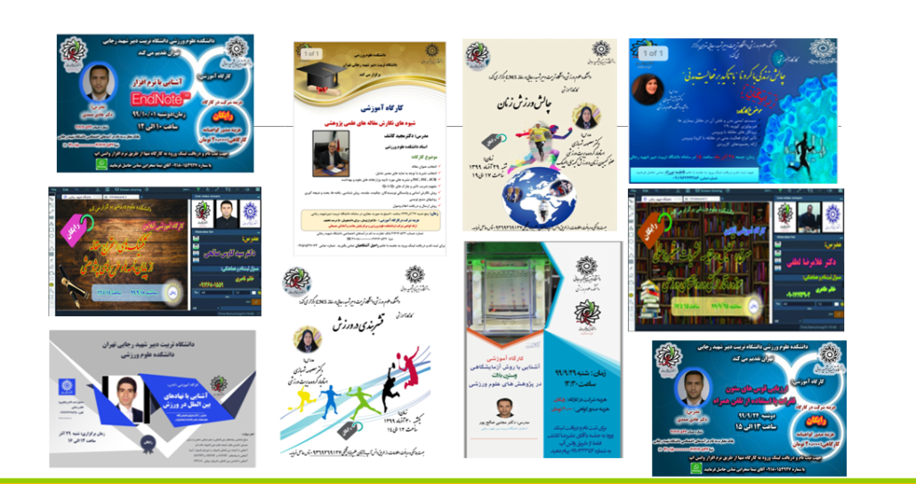 به مناسبت هفته پژوهش در دانشکده علوم ورزشی بیش از ۱۰ کارگاه آموزشی مجازی و در سامانه LMS دانشگاه و به مدرسی اعضاء هیات علمی دانشکده برگزار شد که میانگین تعداد شرکت کنندگان در هر کارگاه ۵۰ نفر بود. در مجموع بیش از ۱۰۰۰ نفر ساعت در این کارگاه ها حضور یافتند. لازم به ذکر است برگزاری کارگاه طی هفته آینده نیز ادامه خواهد داشت.
