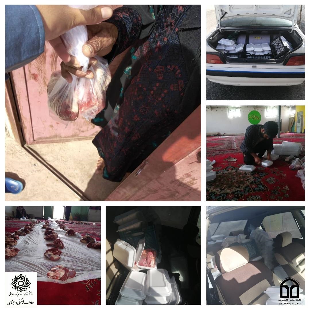 به همت گروه جهادی وتر جامعه اسلامی دانشجویان دانشگاه تربیت دبیر شهید رجایی،با جمع آوری کمک های نقدی و همکاری “هیئت زینبیون اتحادیه جامعه اسلامی دانشجویان” و “هیئت رهپویان حاج قاسم” و سایر خیرین محترم توزیع گوشت میان مردم منطقه سیل زده زهکلوت کرمان صورت گرفت.