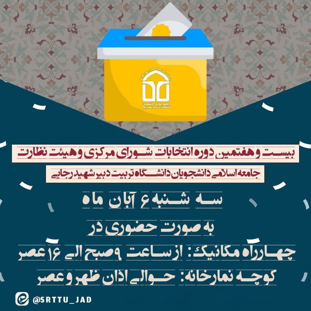 بیست و هفتمین انتخابات شورای مركزی و هیئت نظارت جامعه اسلامی دانشجويان دانشگاه تربیت دبیر شهید رجایی