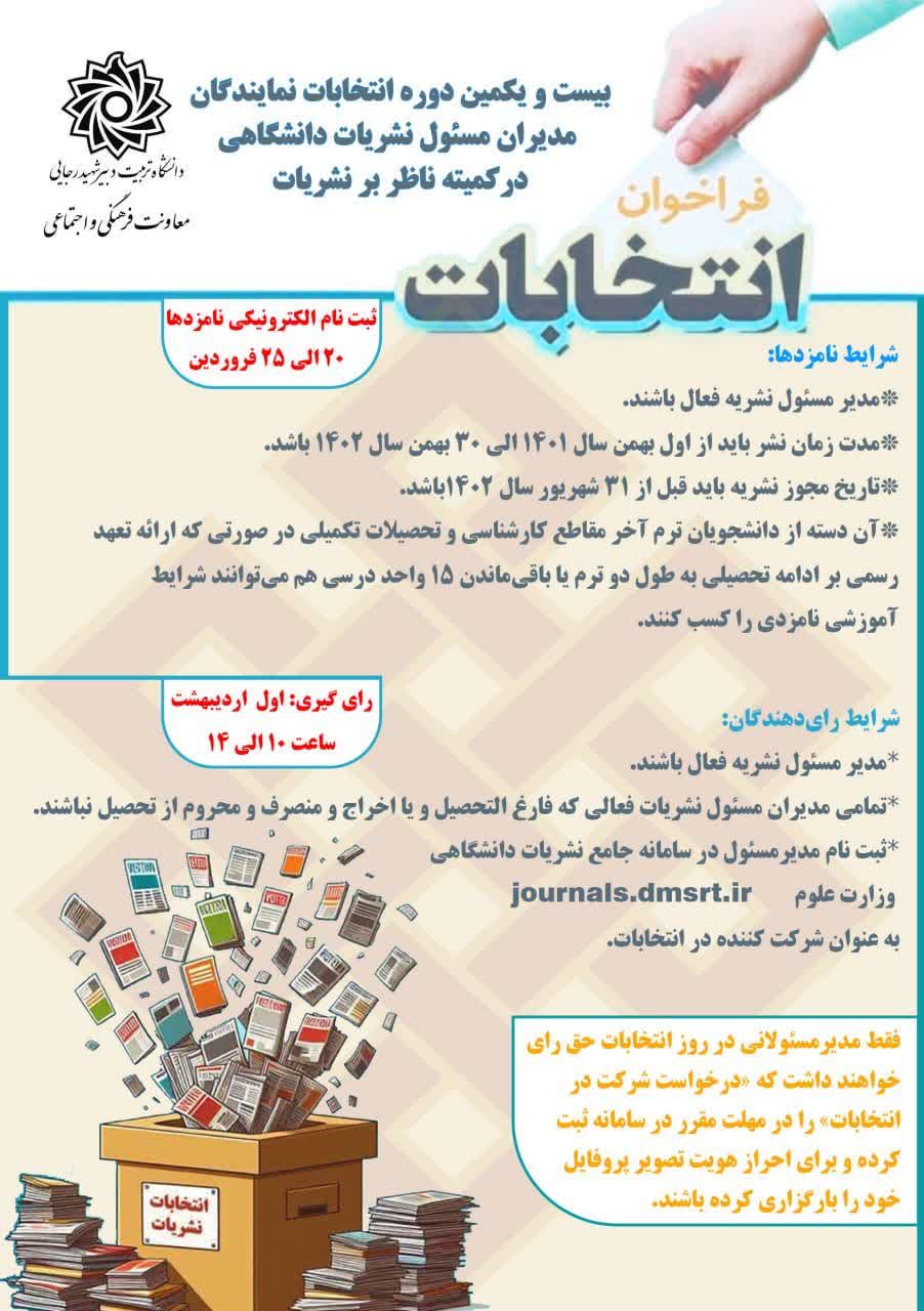 خانه نشریات دانشگاهی معاونت فرهنگی و اجتماعی دانشگاه تربیت دبیر شهید رجایی برگزار میکند: