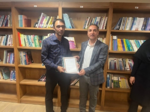 همچنین در این جلسه از زحمات آقای حسن رحیم پور که مدت ۱۵ سال مسئول دفتر دانشکده بودند با اهدای لوح تقدیر و هدیه تقدیر به عمل آمد.