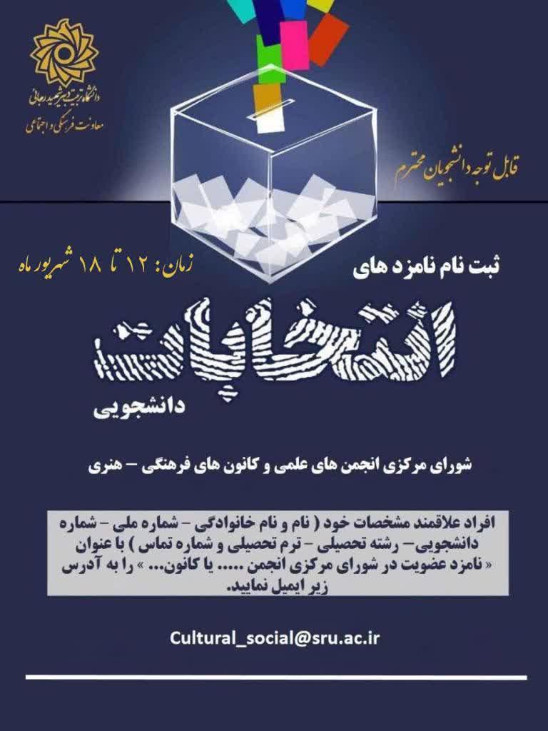 🔹ثبت نام نامزدهای انتخابات دانشجویی شورای مرکزی انجمن های علمی و کانون های فرهنگی – هنری