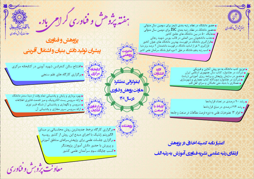 به گزارش معاونت پژوهش و فناوری، مراسم بزرگداشت روز ملی پژوهش و فناوری در دانشگاه تربیت دبیر شهید رجایی، امسال در تاریخ دوشنبه ۲۱ آذر ۱۴۰۱، از ساعت ساعت ۱۲:۳۰ لغایت ۱۴:۳۰ در سالن طهرانی مقدم  برگزار خواهد شد. از همه اعضای هیات علمی دانشگاه، پژوهشگران و علاقه مندان دعوت می شود در این مراسم شرکت نمایند. ضمنا، جدول زمانی مراسم در جدول زیر آمده است: