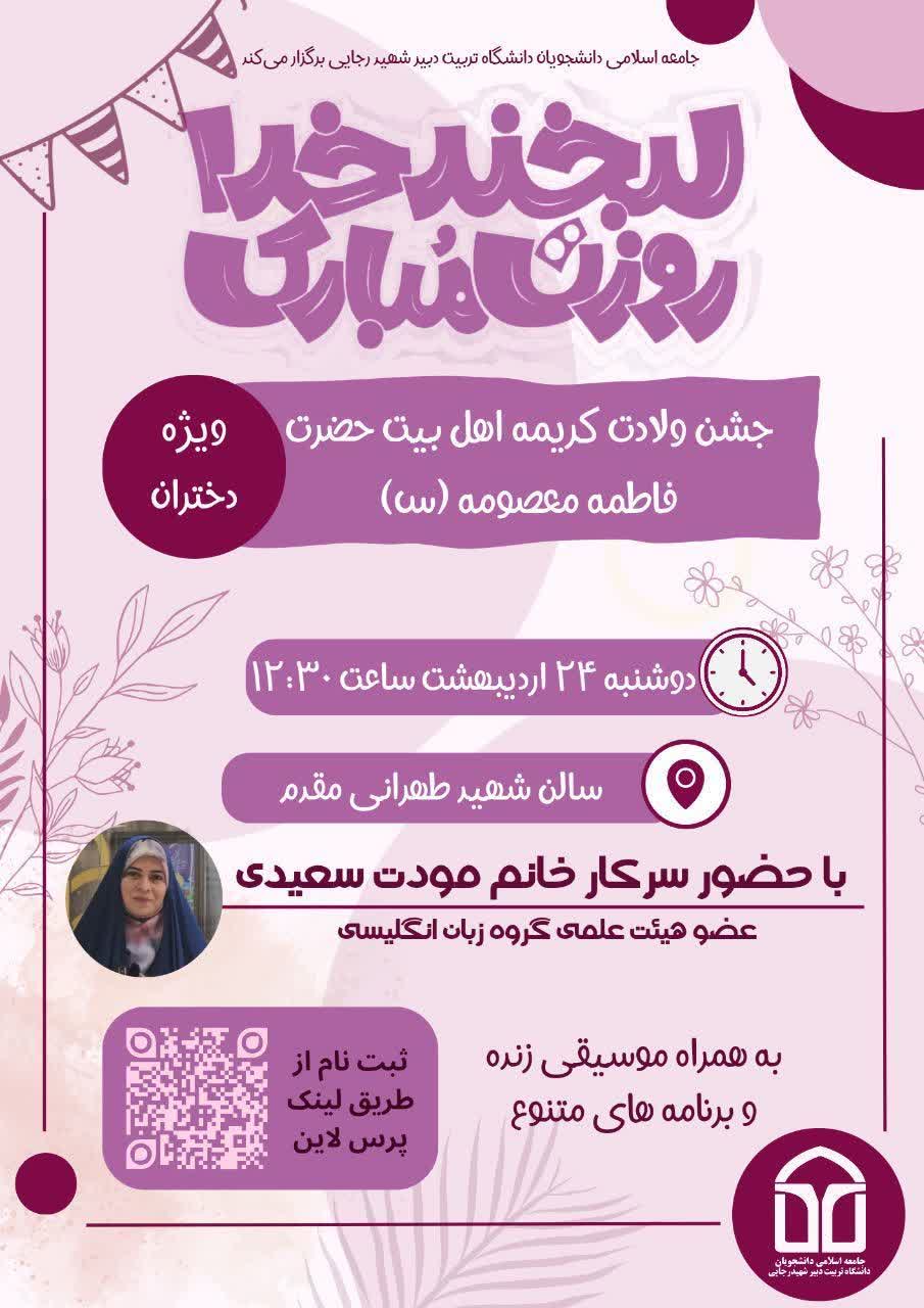 به همت معاونت فرهنگی و اجتماعی، جامعه اسلامی دانشجویان دانشگاه تربیت دبیر شهید رجایی برگزار میکند: