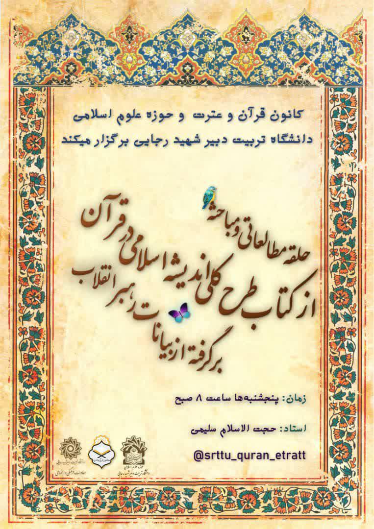 📍کانون قرآن و عترت با همکاري حوزه علوم اسلامی دانشگاه تربیت دبیر شهید رجایی برگزار می کند :
