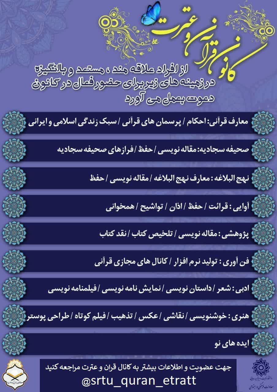 دعوت به همکاری و فعالیت در کانون قرآن وعترت