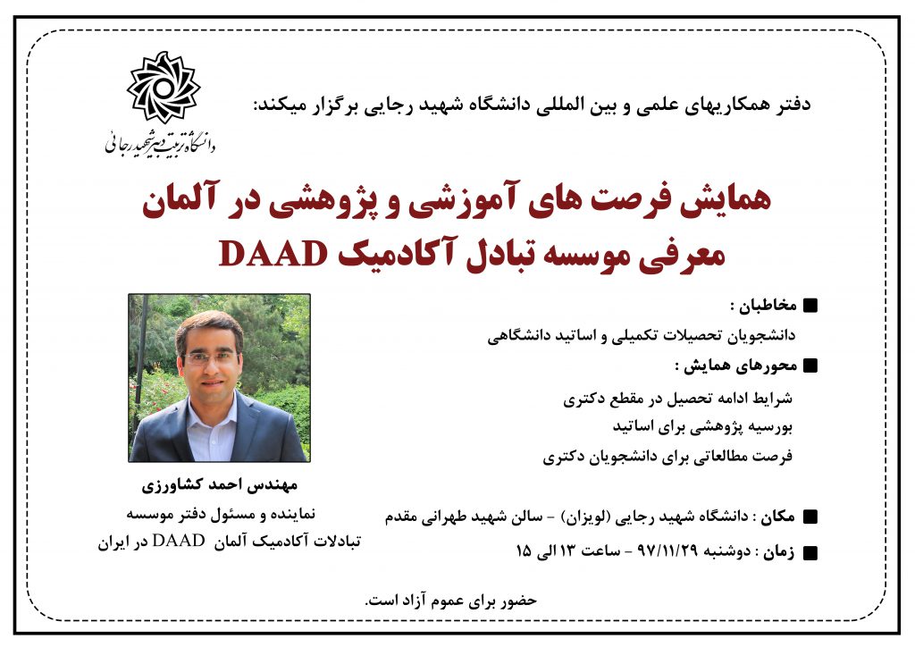 همایش فرصت های آموزشی و پژوهشی در آلمان و معرفی موسسه تبادل آکادمیک DAAD