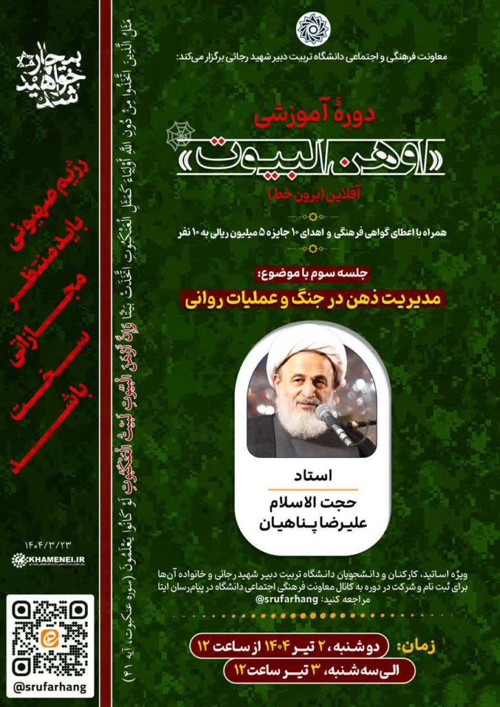 دوره آموزشی “اوهن البیوت” *به صورت آفلاین* موضوع جلسه سوم: «مدیریت ذهن در جنگ و عملیات روانی»