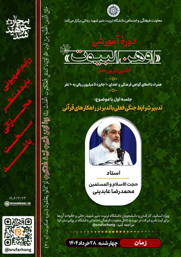 دوره آموزشی “اوهن البیوت” به صورت آفلاین موضوع جلسه اول: تدبیر شرایط جنگی فعلی با تدبر در راهکارهای قرآنی