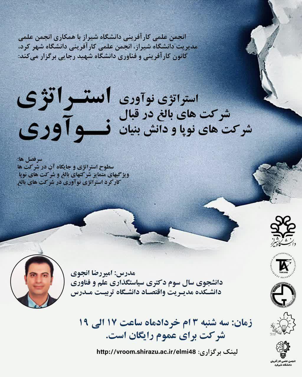 🔴کانون کارآفرینی دانشگاه با همکاری کانون های کارآفرینی دانشگاه شیراز و شهر کرد و نیز انجمن مدیریت دانشگاه شیراز برگزار میکند:
