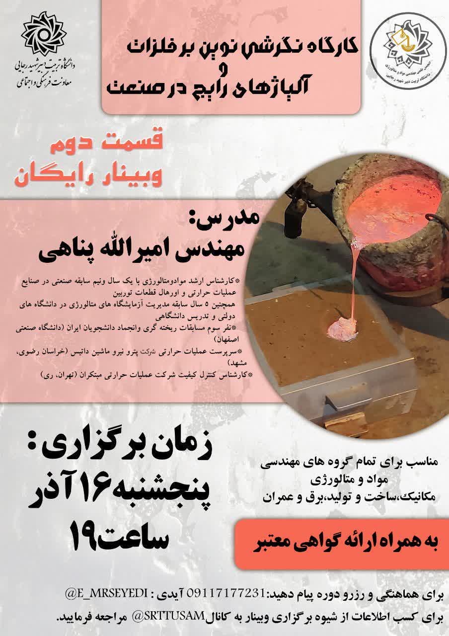 وبینار کارگاه نگرش نوین بر فلزات و آلیاژهای رایج در صنعت (قسمت دوم)