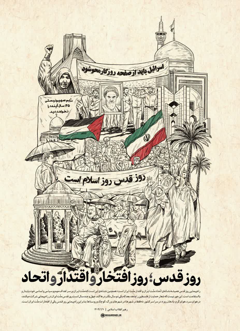 بنابراین راهپیمایی #روز_قدس یکی از افتخارات ملّت ایران است. ۱۴۰۴/۰۱/۰۷