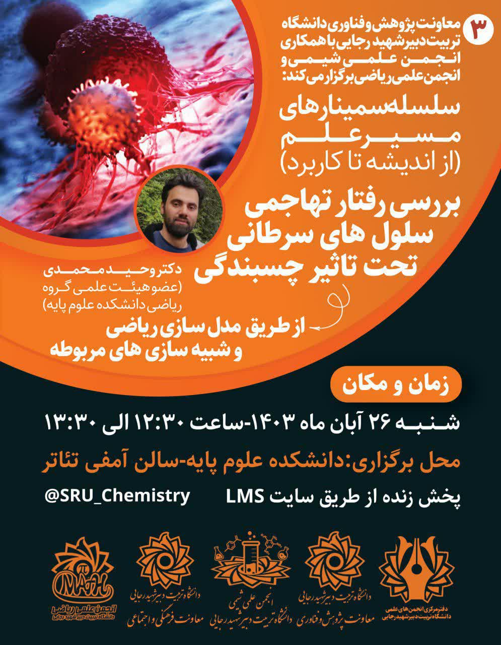 معاونت پژوهش و فناوری دانشگاه تربیت دبیر شهید رجایی با همکاری انجمن های علمی دانشجویی شیمی و انجمن علمی دانشجویی ریاضی برگزار میکند: سلسله سمینارهای مسیر علم (از اندیشه تا کاربرد)