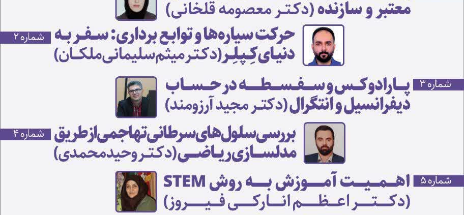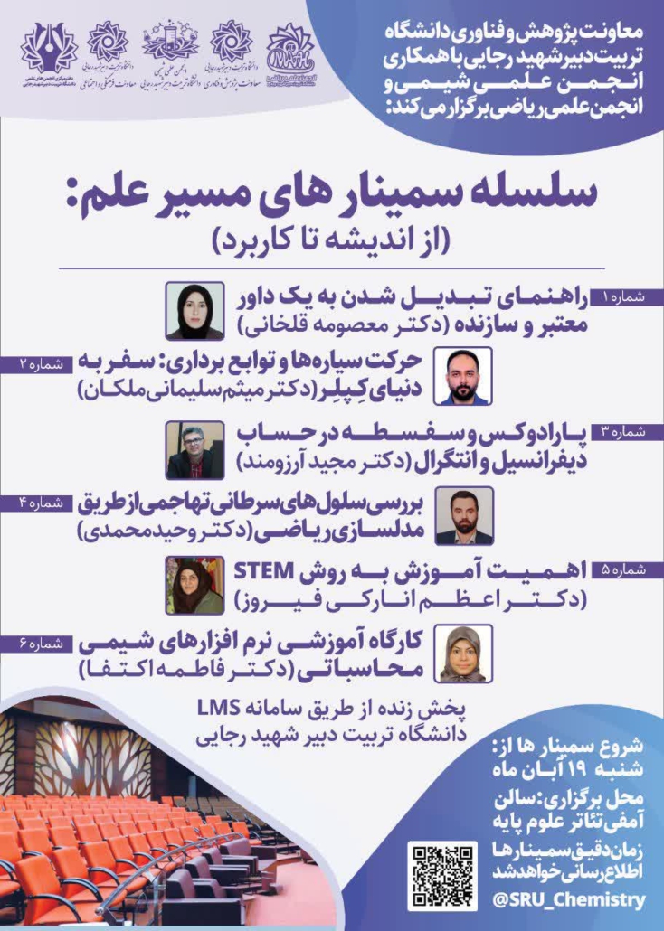 با همت معاونت پژوهش و فناوری دانشگاه تربیت دبیر شهید رجایی و با همکاری انجمن علمی دانشجویی شیمی و انجمن علمی دانشجویی ریاضی برگزار می گردد: