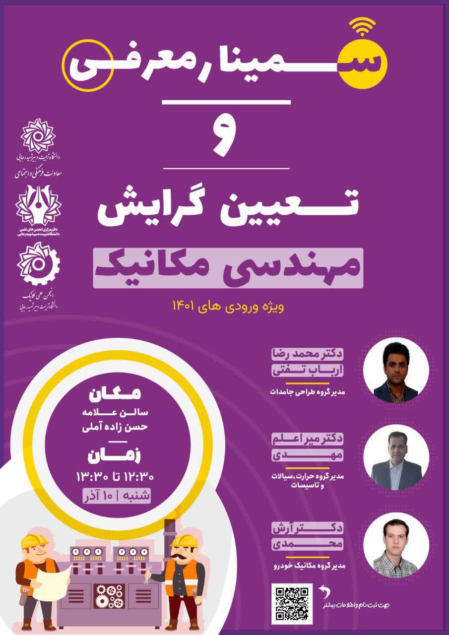 انجمن علمی دانشجویی مکانیک دانشگاه تربیت دبیر شهیدرجایی برگزار می کند:
