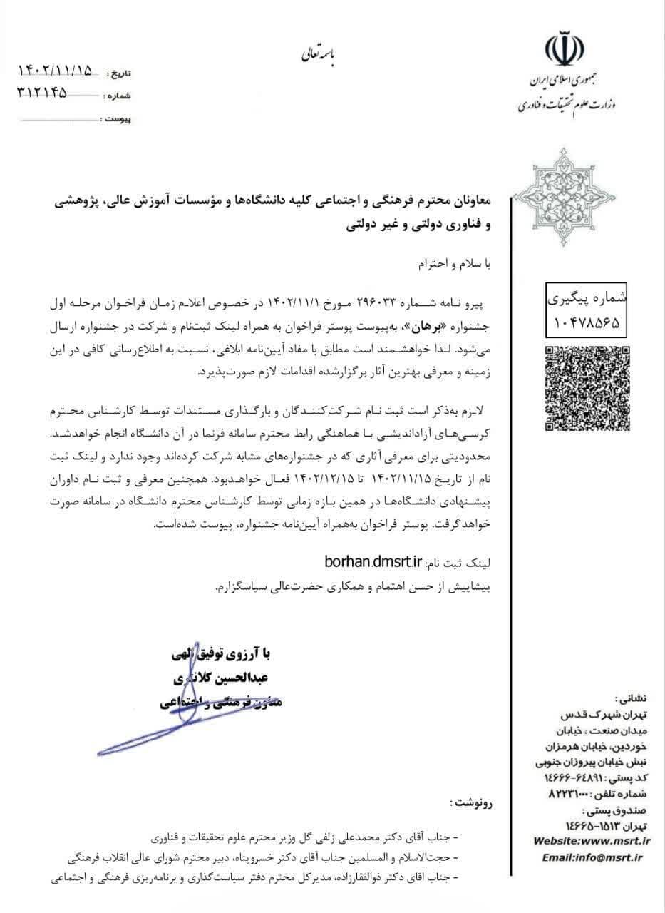 لینک ثبت نام و بارگزاری مستندات: borhan.dmsrt.ir