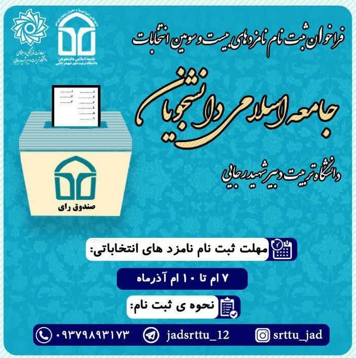 🔶فراخوان ثبت نام بیست و سومین انتخابات جامعه اسلامی دانشجویان دانشگاه تربیت دبیر شهید رجایی 📢