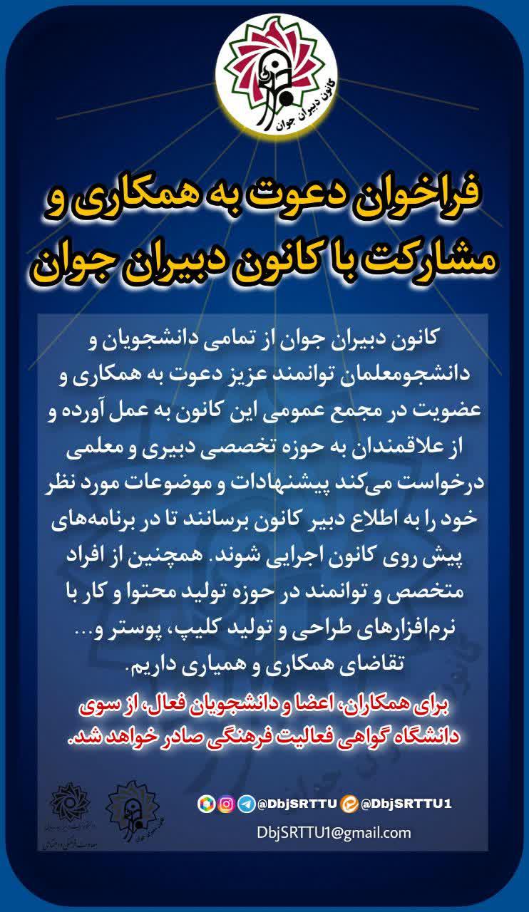 فراخوان دعوت به همکاری و عضویت در کانون دبیران جوان.