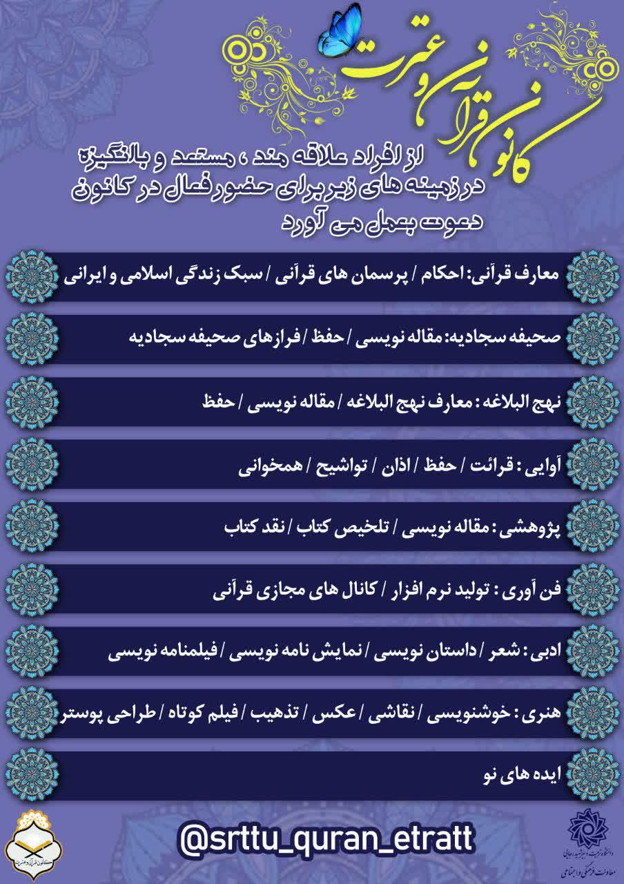 فراخوان عمومی کانون قرآن و عترت دانشگاه جهت همکاری در کانون