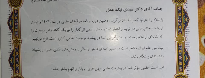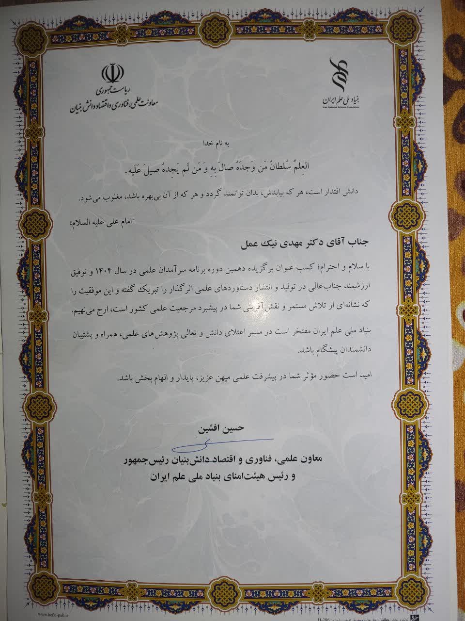 دکتر مهدی نیک عمل استاد تمام گروه آموزشی فیزیک در لیست ۷۷ نفره «سرآمدان علمی کشور»