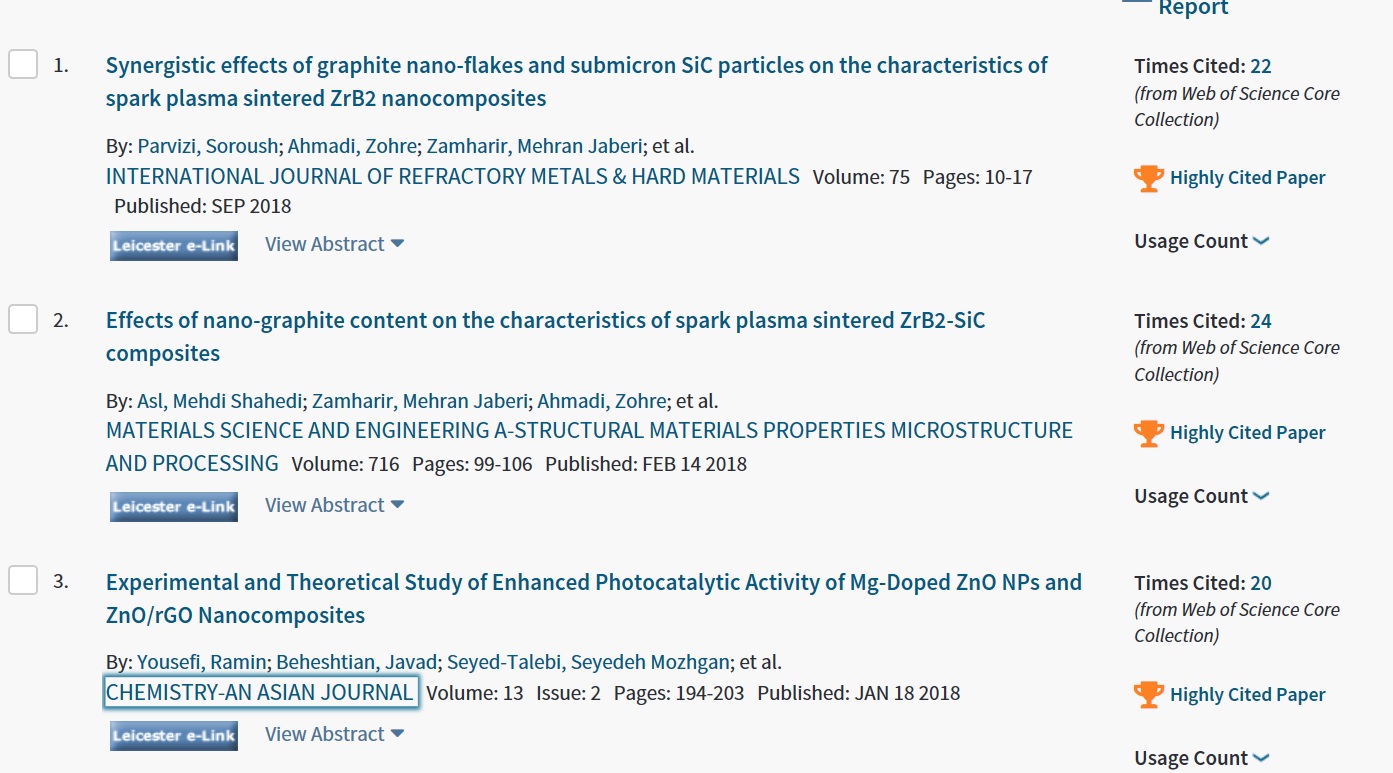 به گزارش پایگاه استنادی WOS سه مقاله منتشر شده توسط اعضا هیات علمی دانشگاه به عنوان مقاله پر استناد در این پایگاه نمایه شده اند.