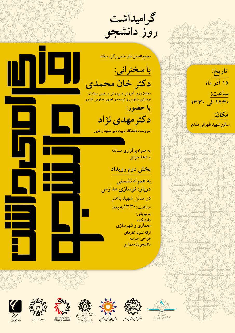 مراسم گرامیداشت روز دانشجو با حضور دکتر خان محمدی معاون وزیر آموزش و پرورش و رئیس سازمان نوسازی مدارس و توسعه و تجهیز مدارس کشور