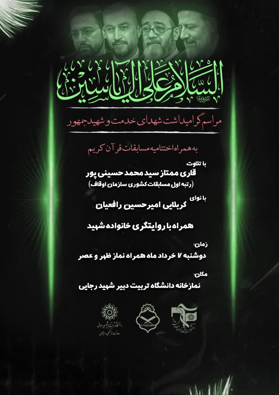 مراسم گرامیداشت شهید جمهور و شهدای خدمت به همراه اختتامیه مسابقات قرآن کریم
