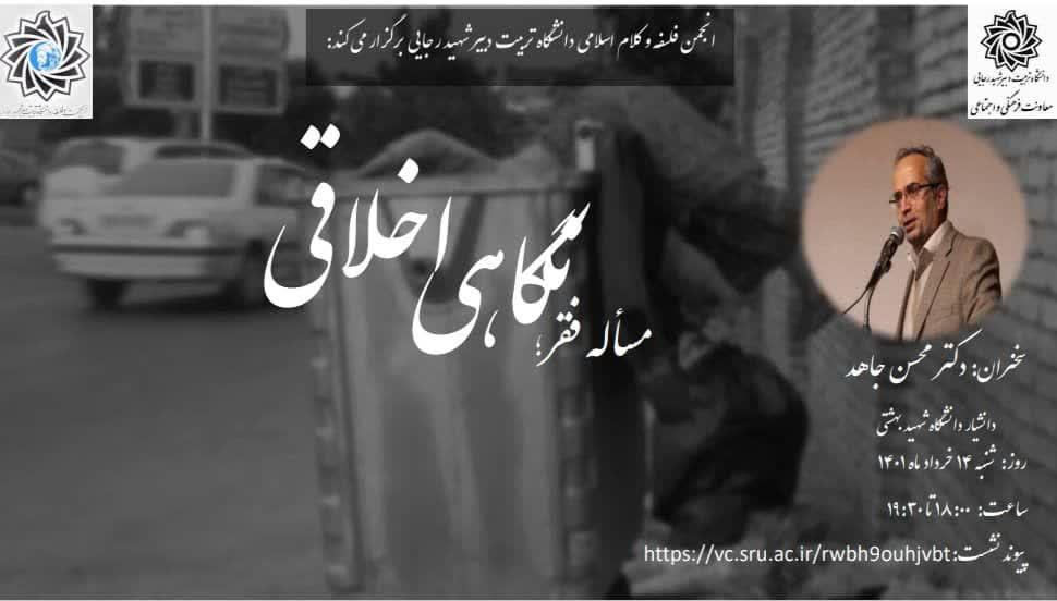 مسأله فقر؛ نگاهی اخلاقی ۱۳ خرداد ۱۴۰۱/در Uncategorised, اخبار معاونت فرهنگی و اجتماعی /توسط cultureمعاونت فرهنگی و اجتماعی دانشگاه خبر داد؛ انجمن فلسفه و کلام اسلامی دانشگاه شهید رجایی برگزار میکند: مسأله فقر؛ نگاهی اخلاقی سخنران: دکتر محسن جاهد دانشیار دانشگاه بهشتی روز: شنبه ۱۴ خردادماه ۱۴۰۱ ساعت: ۱۸.۰۰ تا ۱۹.۳۰ پیوند نشست: https://vc.sru.ac.ir/rwbh9ouhjvbt https://www.sru.ac.ir/wp-content/uploads/2022/06/photo_۲۰۲۲-۰۶-۰۳_۲۲-۲۶-۳۲.jpg 552 970 culture https://www.sru.ac.ir/wp-content/uploads/2020/06/arm-uni-97-white-300x300.png culture2022-06-03 21:47:472022-06-03 21:52:16مسأله فقر؛ نگاهی اخلاقی