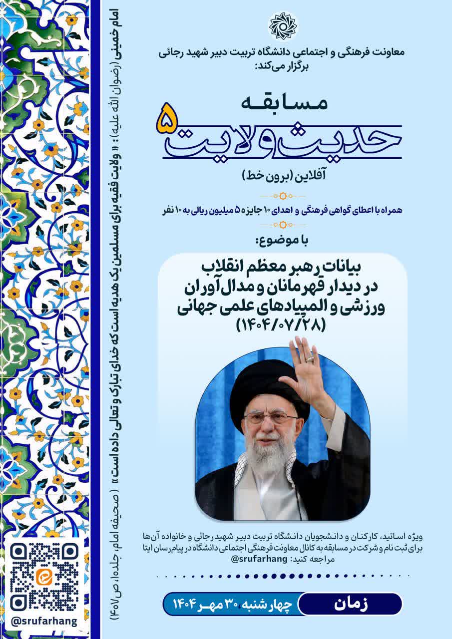 معاونت فرهنگی و اجتماعی دانشگاه تربیت دبیر شهید رجائی برگزار می کند: