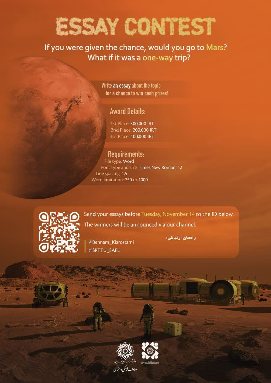 علاقه مندان به شرکت در این مسابقه می توانند آثار خود را تا پیش از ۲۳ آبان ماه، در قالب یک فایل Word و با رعایت مشخصات درج شده در بخش Requirements، به آیدی زیر ارسال کنند.