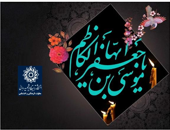 معاونت فرهنگی و اجتماعی:بیست و پنجم رجب، سالروز شهادت مظلومانه حضرت باب الحوائج، امام موسی بن جعفر علیه السلام بر عموم محبّین و شیعیان تسلیت باد.