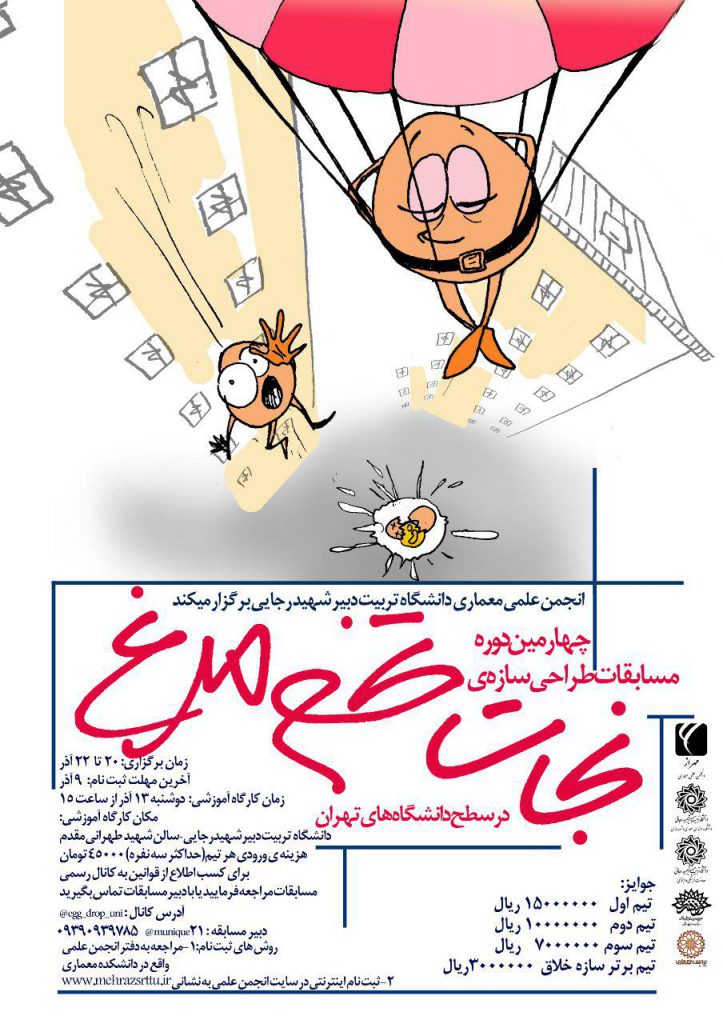 مسابقات طراحی سازه نجات تخم مرغ به مدت ۳ روز و با شرکت ۶۱ تیم با مشارکت دانشگاه های زیر برگزار گردید: