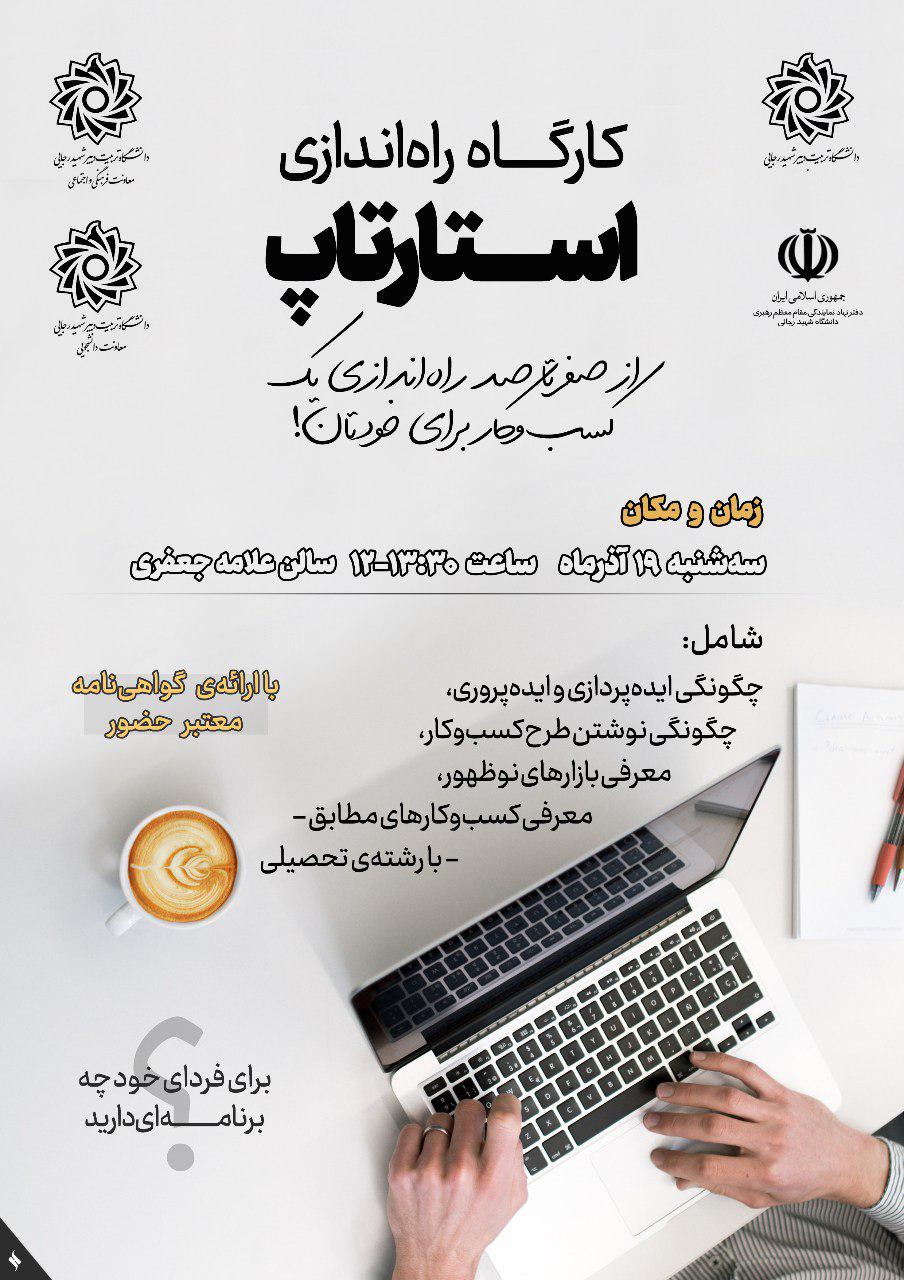 کارگاه را ه انداری استارتاپ روز سه شنبه ۱۹ آذر ماه مطابق با اطلاعات پوستر ذیل برگزار خواهد شد.